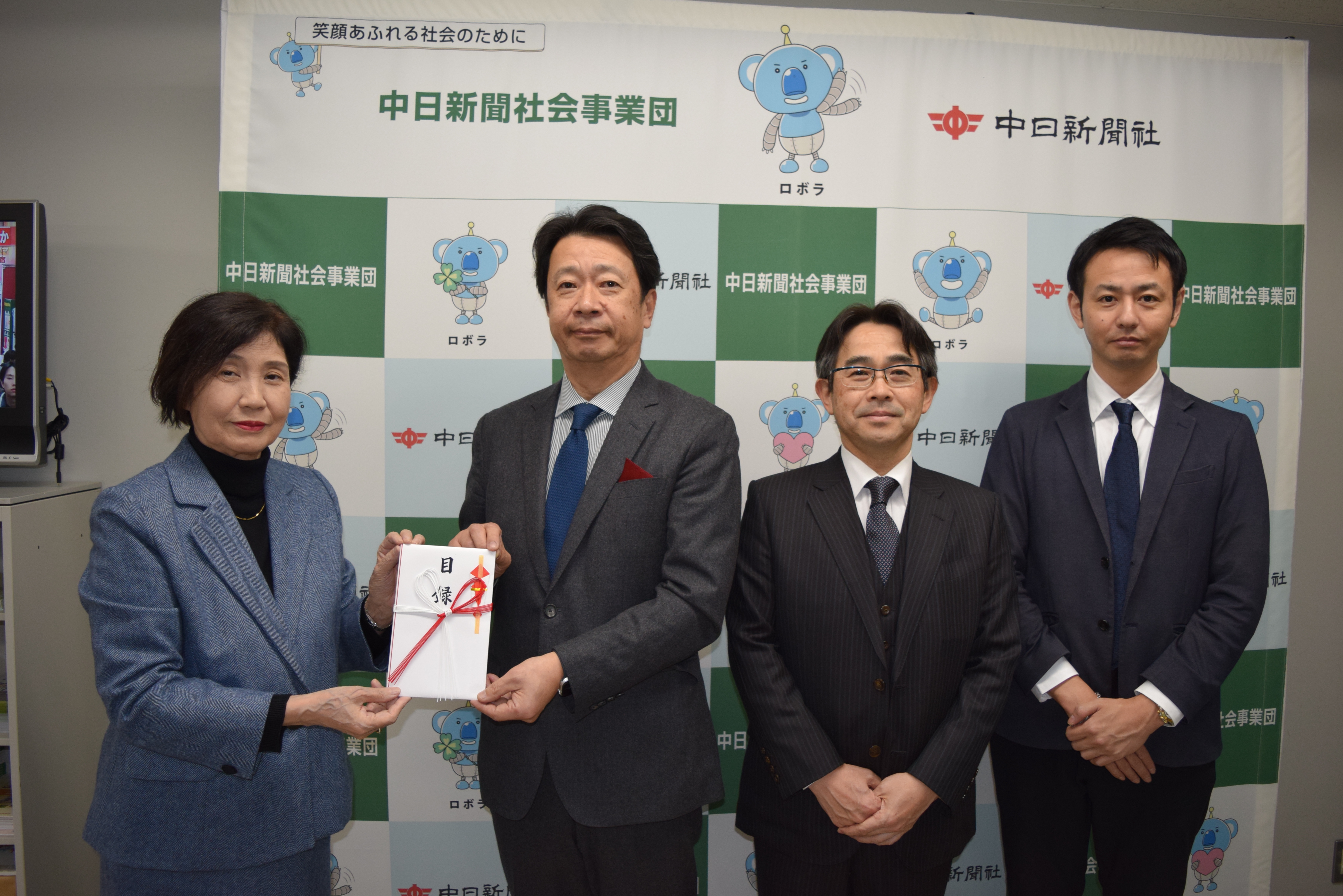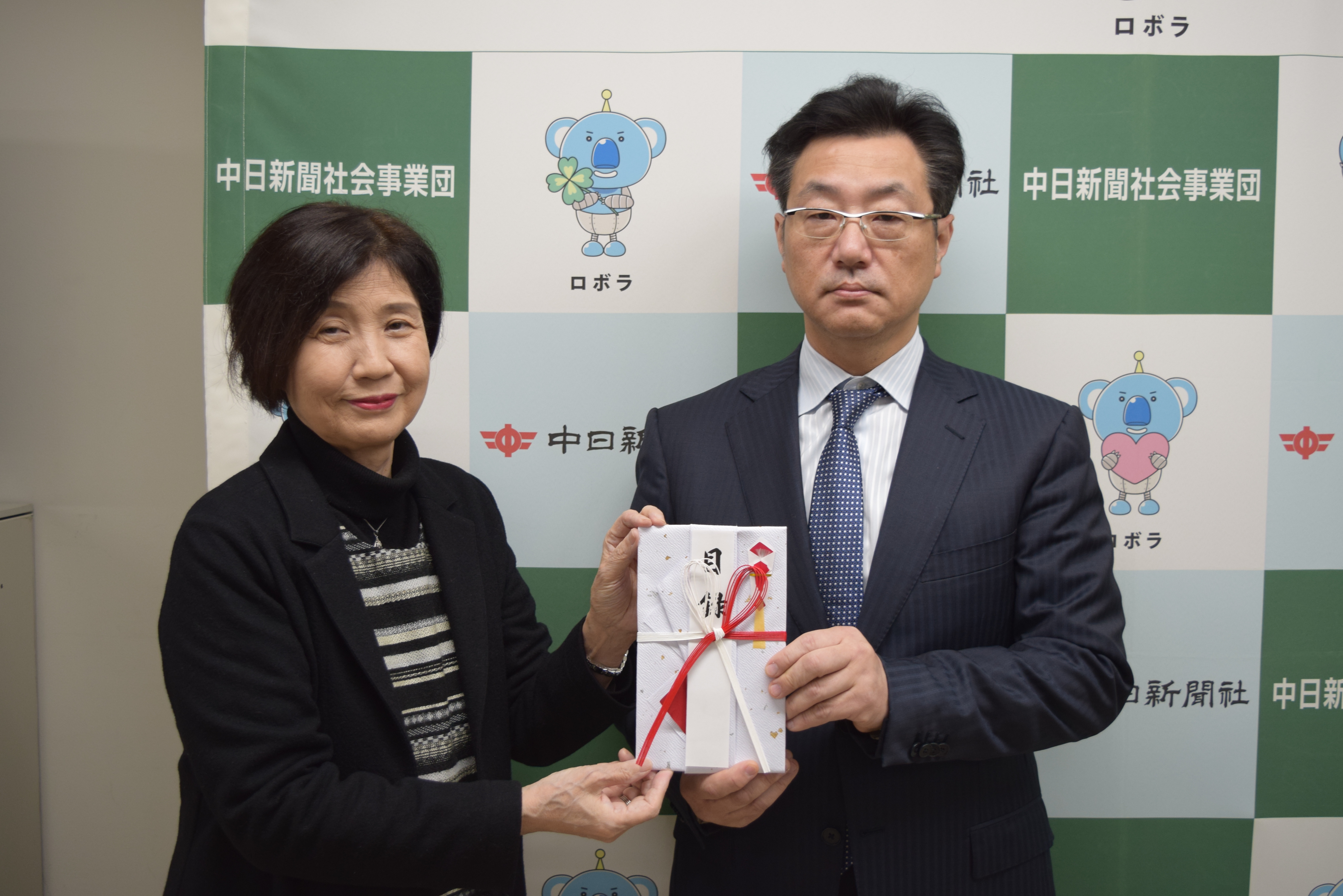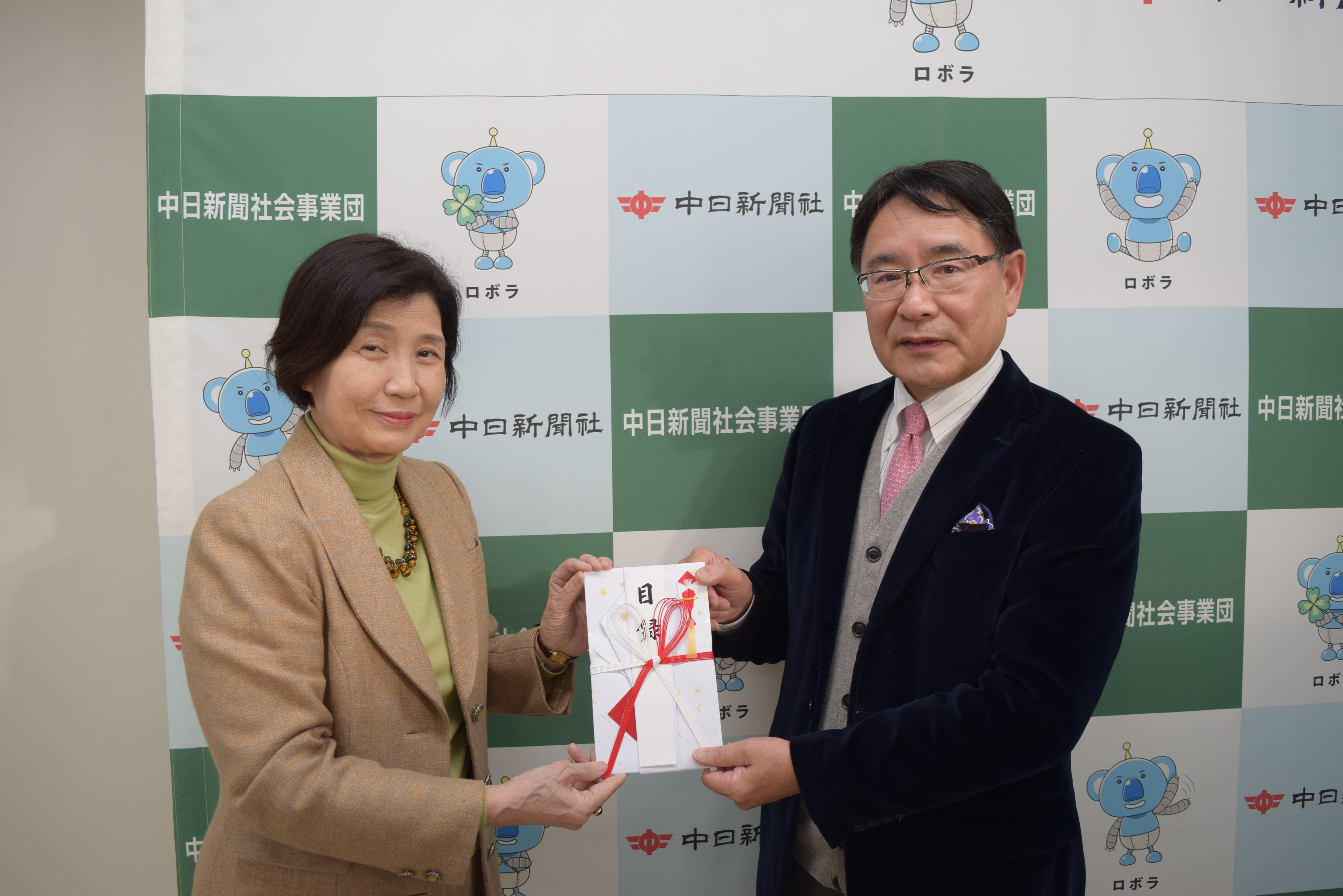 12月22日、県内の財界人らでつくる五月会の藤原一朗会計幹事(名古屋銀行頭取)が当事業団を訪れ、お届けくださいました。