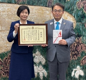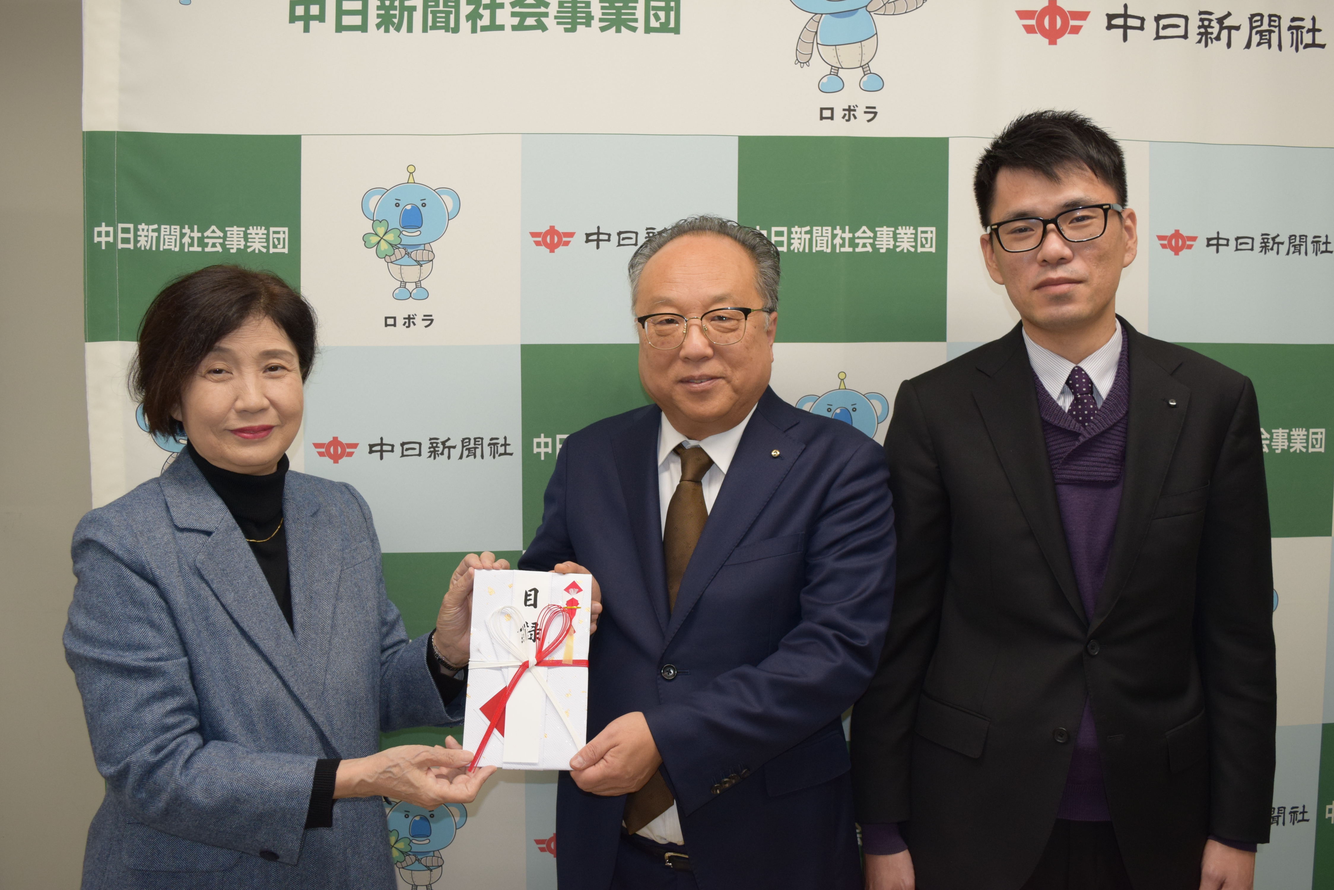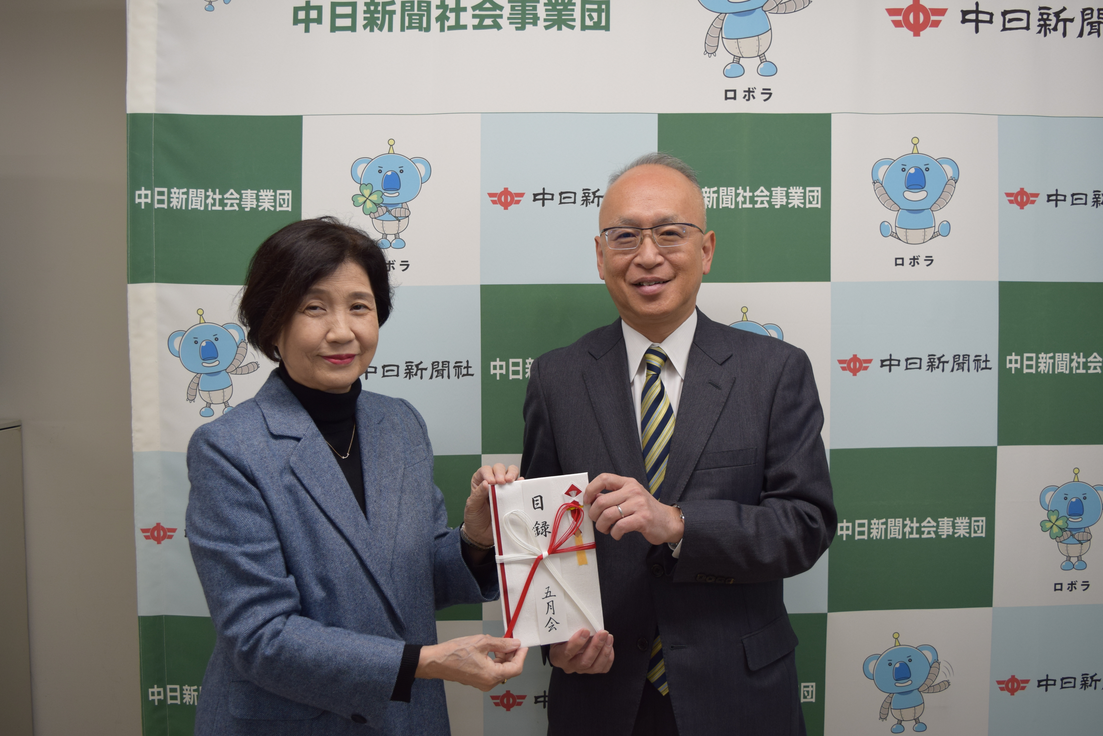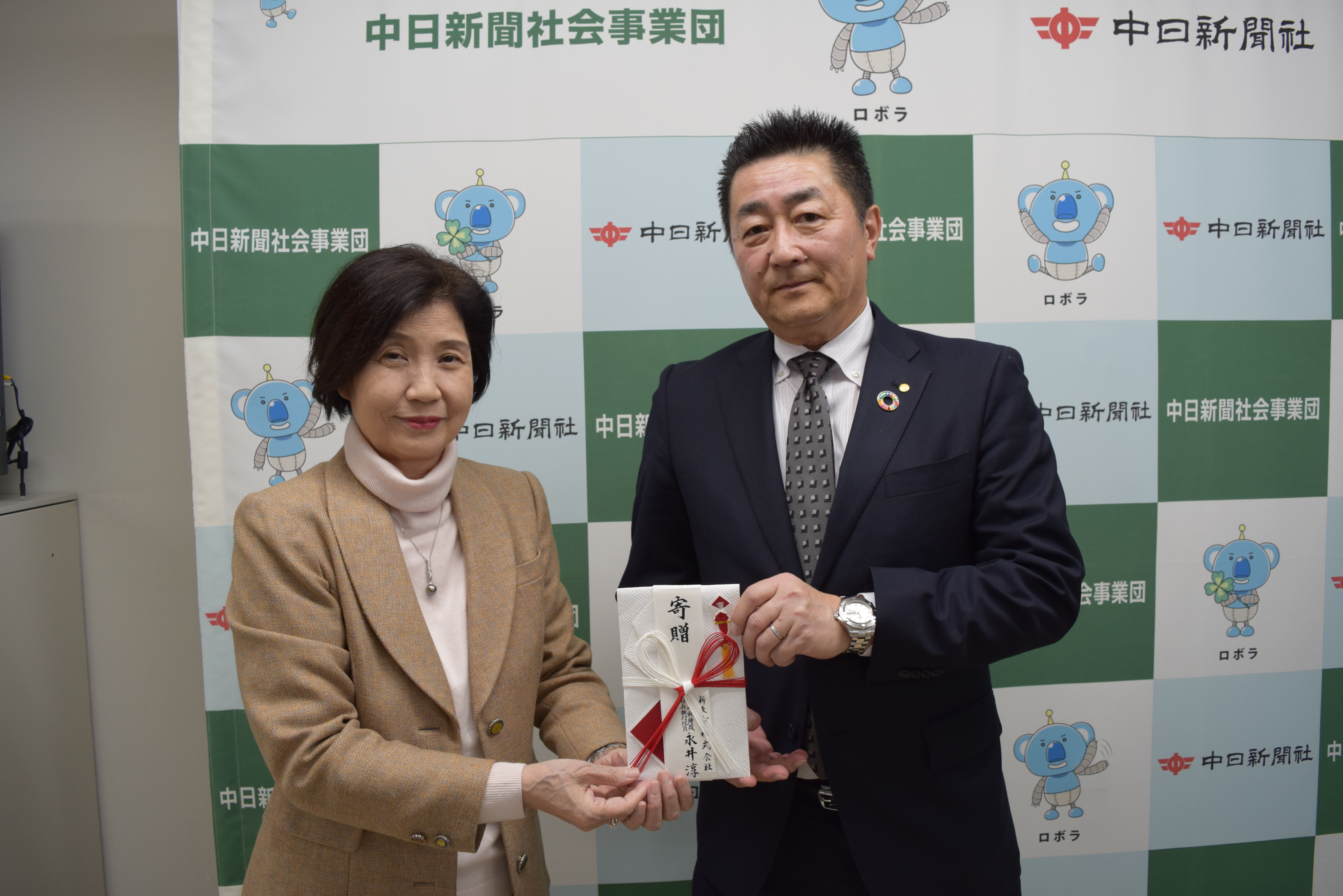 12月22日、県内の財界人らでつくる五月会の藤原一朗会計幹事(名古屋銀行頭取)が当事業団を訪れ、お届けくださいました。