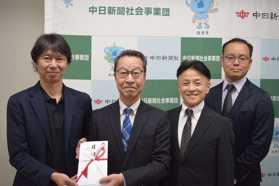 6月16日、日本ダンス議会中部総局の田中弘昭局長らが当事業団を訪れ、15日に開催した2025年前期中部日本ダンス選手権大会で行ったチャリティー抽選会の売上金の一部をお届けくださいました。